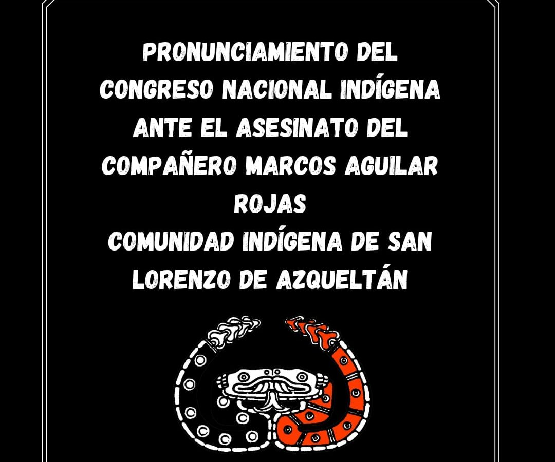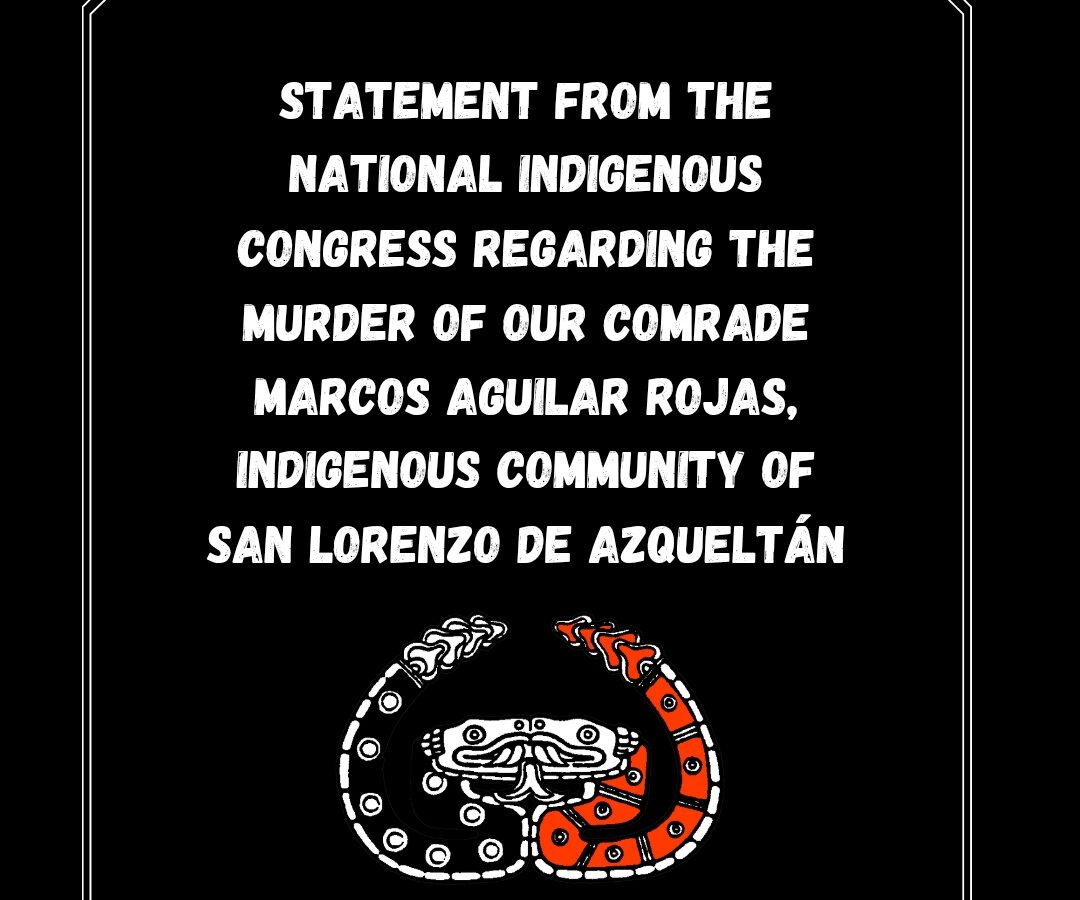 STATEMENT FROM THE NATIONAL INDIGENOUS CONGRESS REGARDING THE MURDER OF OUR COMRADE MARCOS AGUILAR ROJAS, INDIGENOUS COMMUNITY OF SAN LORENZO DE AZQUELTÁN
