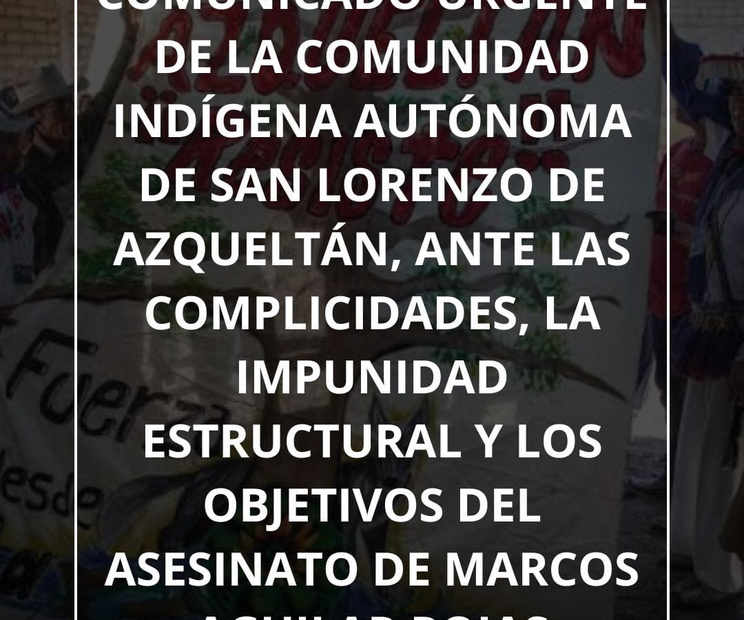 COMUNICADO URGENTE DE LA COMUNIDAD INDÍGENA AUTÓNOMA DE SAN LORENZO DE AZQUELTÁN, ANTE LAS COMPLICIDADES, LA IMPUNIDAD ESTRUCTURAL Y LOS OBJETIVOS DEL ASESINATO DE MARCOS AGUILAR ROJAS