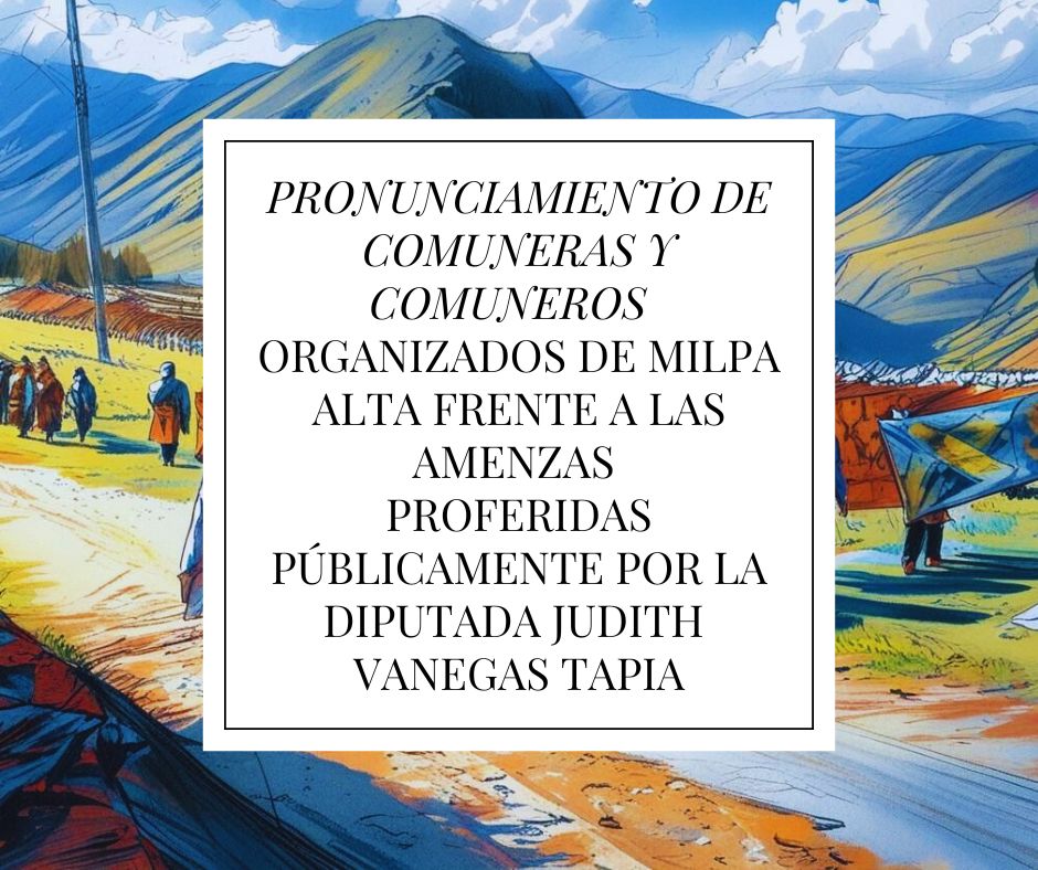 PRONUNCIAMIENTO DE COMUNERAS Y COMUNEROS ORGANIZADOS DE MILPA ALTA FRENTE A LAS AMENAZAS PROFERIDAS PÚBLICAMENTE POR LA DIPUTADA JUDITH VANEGAS TAPIA