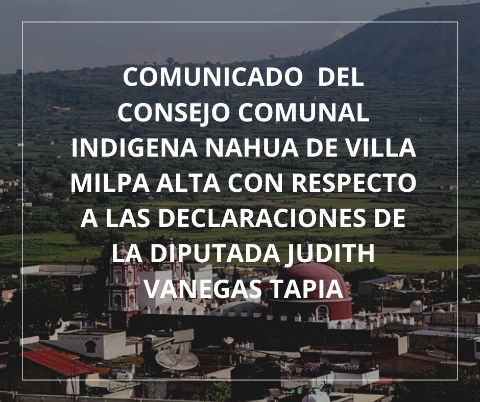 COMUNICADO DEL CONSEJO COMUNAL INDÍGENA NAHUA DE VILLA MILPA ALTA CON RESPECTO A LAS DECLARACIONES DE LA DIPUTADA JUDITH VANEGAS TAPIA