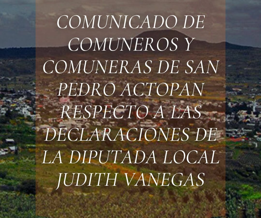COMUNICADO DE COMUNEROS Y COMUNERAS DE SAN PEDRO ACTOPAN RESPECTO A LAS DECLARACIONES DE LA DIPUTADA LOCAL JUDITH VANEGAS