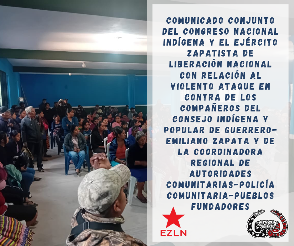 Comunicado conjunto del Congreso Nacional Indígena y el Ejército Zapatista de Liberación Nacional con relación al violento ataque en contra de los compañeros del Consejo Indígena y Popular de Guerrero-Emiliano Zapata y de la Coordinadora Regional de Autoridades Comunitarias-Policía Comunitaria-Pueblos Fundadores