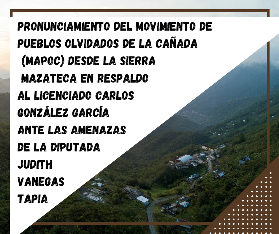 PRONUNCIAMIENTO DEL MOVIMIENTO DE PUEBLOS OLVIDADOS DE LA CAÑADA (MAPOC) DESDE LA SIERRA MAZATECA. EN RESPALDO AL LICENCIADO CARLOS GONZÁLEZ GARCÍA ANTE LAS AMENAZAS DE LA DIPUTADA JUDITH VANEGAS TAPIA