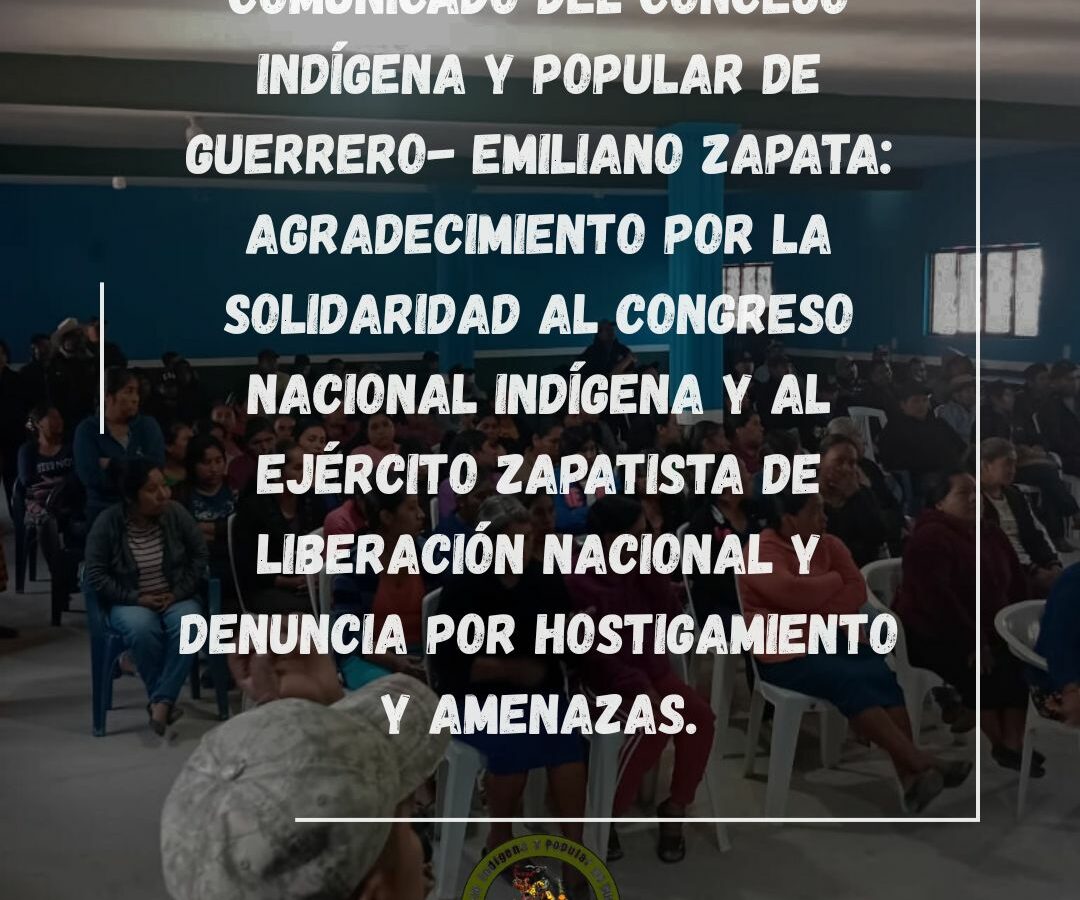 COMUNICADO DEL CONCEJO INDÍGENA Y POPULAR DE GUERRERO- EMILIANO ZAPATA: AGRADECIMIENTO POR LA SOLIDARIDAD AL CONGRESO NACIONAL INDÍGENA Y AL EJÉRCITO ZAPATISTA DE LIBERACIÓN NACIONAL Y DENUNCIA POR HOSTIGAMIENTO Y AMENAZAS.