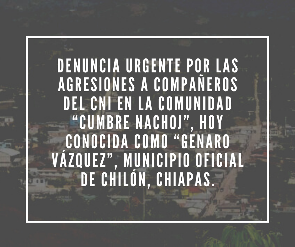 Denuncia urgente por las agresiones a compañeros del CNI en la comunidad “Cumbre Nachoj”, hoy conocida como “Genaro Vázquez”, municipio oficial de Chilón, Chiapas.