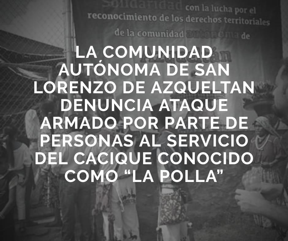 LA COMUNIDAD AUTÓNOMA DE SAN LORENZO DE AZQUELTAN DENUNCIA ATAQUE ARMADO POR PARTE DE PERSONAS AL SERVICIO DEL CACIQUE CONOCIDO COMO “LA POLLA”