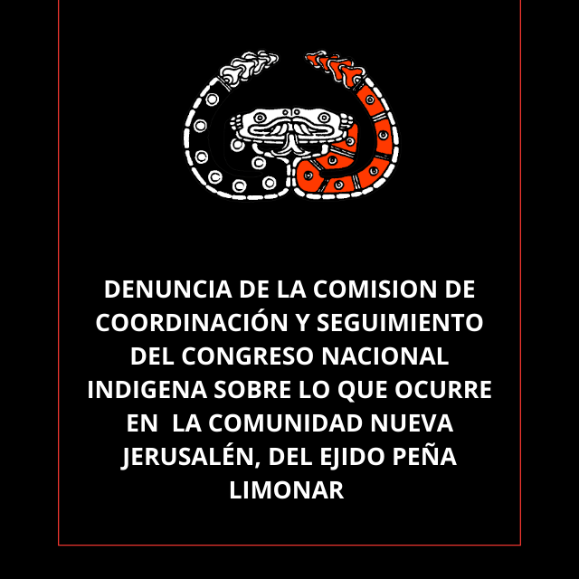 DENUNCIA DE LA COMISION DE COORDINACIÓN Y SEGUIMIENTO DEL CONGRESO NACIONAL INDIGENA SOBRE LO QUE OCURRE EN LA COMUNIDAD NUEVA JERUSALÉN, DEL EJIDO PEÑA LIMONAR.