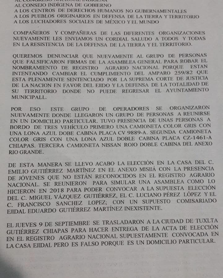 EJIDO TILA CHIAPAS 08 DE SEPTIEMBRE DEL 2021 DENUNCIA PÚBLICA A LOS MEDIOS DE COMUNICACIÓN…