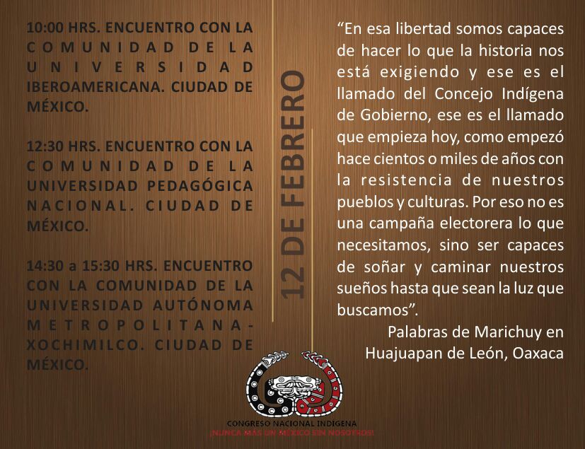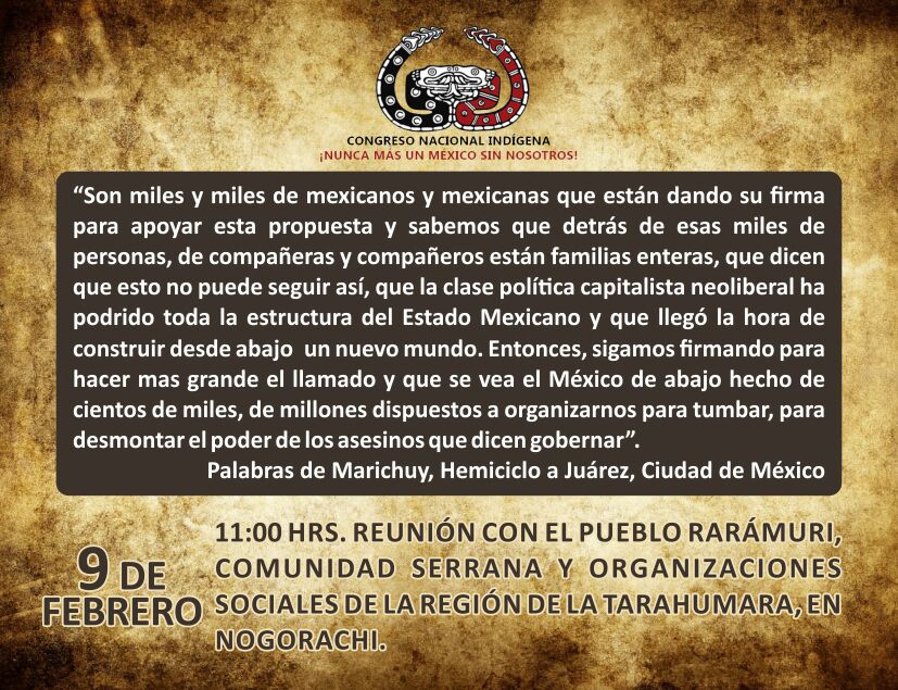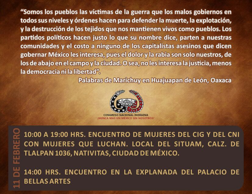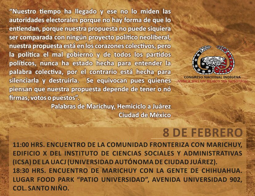 En esta sección podrá encontrar el caminar del CIG y Marichuy en las geografías del México de abajo, sus encuentros y su palabra.