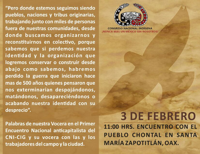 En esta sección podrá encontrar el caminar del CIG y Marichuy en las geografías del México de abajo, sus encuentros y su palabra.