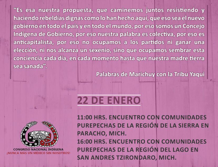En esta sección podrá encontrar el caminar del CIG y Marichuy en las geografías del México de abajo, sus encuentros y su palabra.