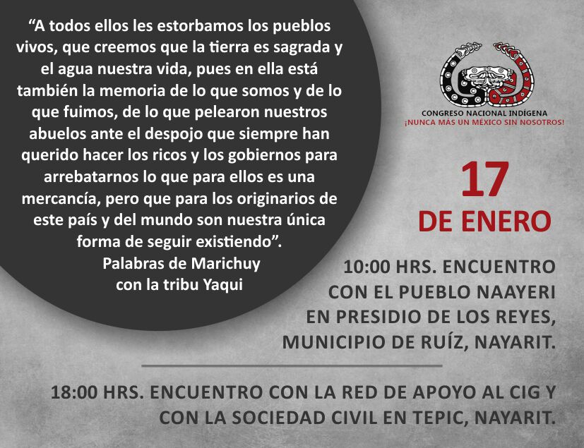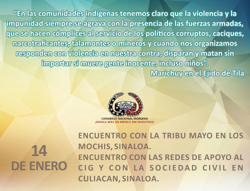 El Concejo Indígena de Gobierno y su Vocera nos convocan al “Encuentro con Redes de…