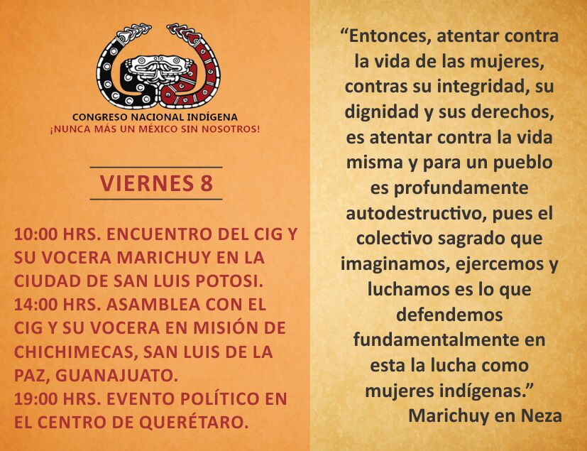 En esta sección podrá encontrar el caminar del CIG y Marichuy en las geografías del México de abajo, sus encuentros y su palabra.