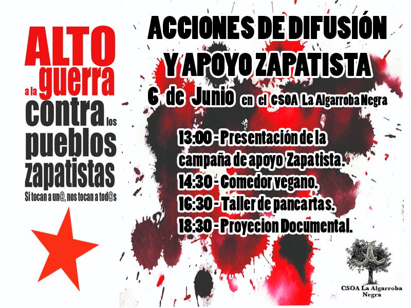 ACCIONES DE DIFUSIÓN Y APOYO ZAPATISTA 6 de hunio en el CSOA La Algarroba Negra…