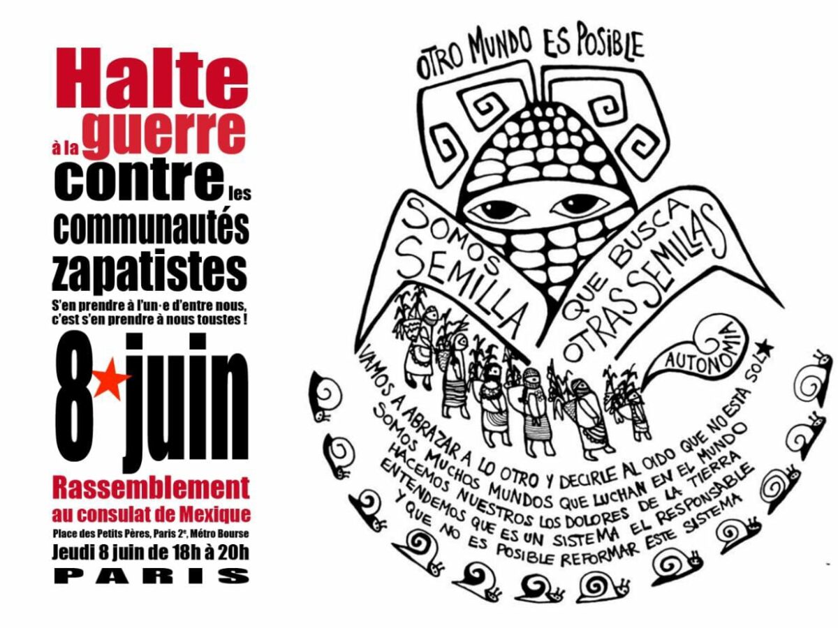 Halte a la guerre contre las communautes zapatistes 8 juin Rassemblement au consulat de Mexique…