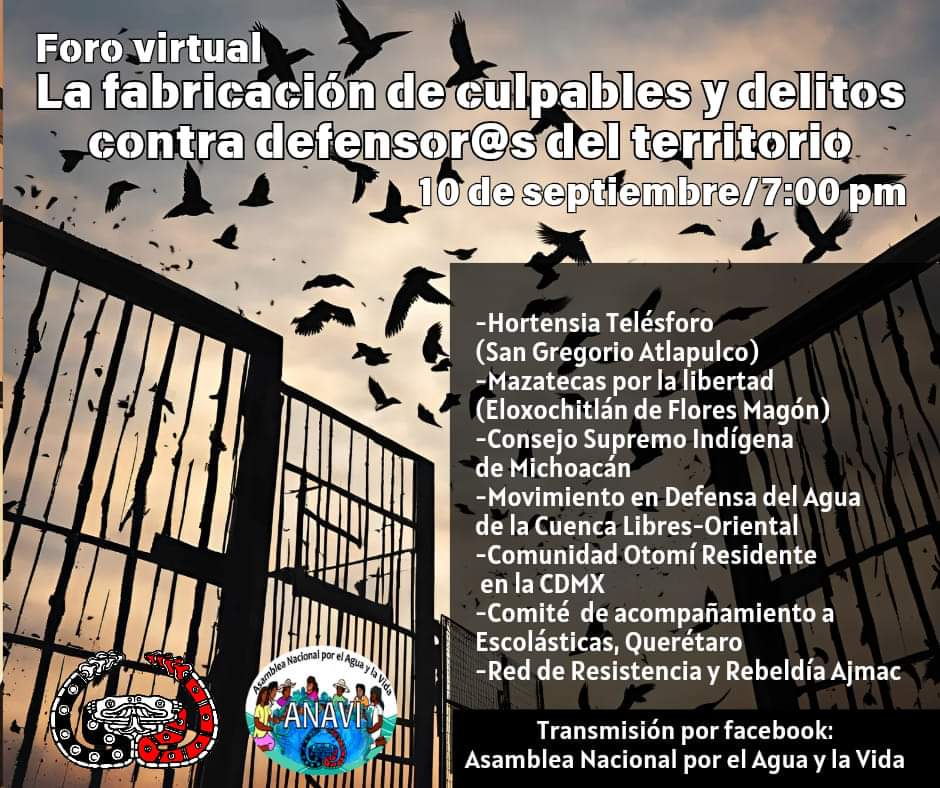 FORO VIRTUAL FABRICACIÓN DE CULPABLES Y DELITOS CONTRA DEFENSOR@S DEL TERRITORIO