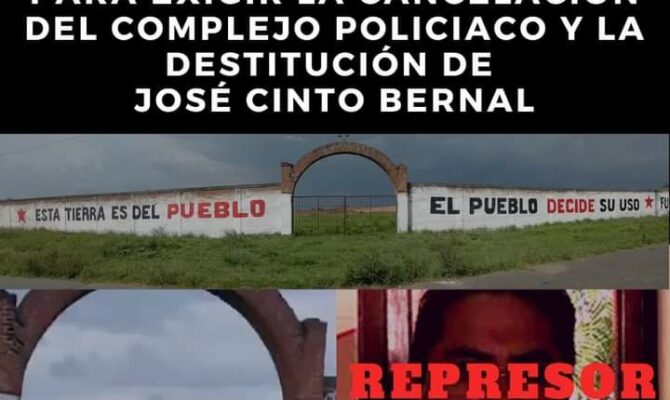 RUEDA DE PRENSA, para exigir la cancelación definitiva del complejo policiaco en San Lucas Nextetelco, así como la destitución de José Cinto Bernal.