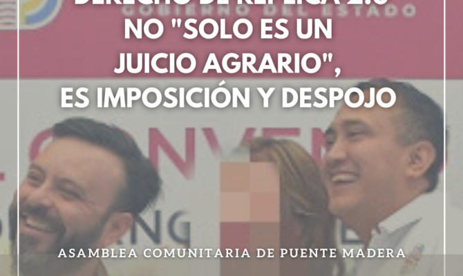 DERECHO DE RÉPLICA 2.0: NO «SOLO ES UN JUICIO AGRARIO», ES IMPOSICIÓN Y DESPOJO.