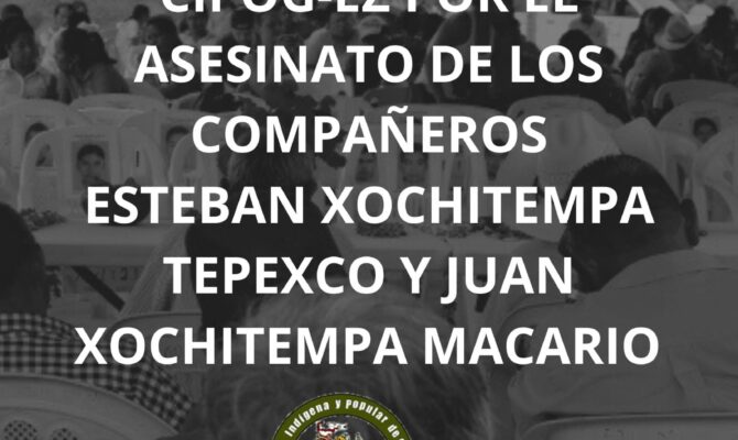 COMUNICADO DEL CIPOG-EZ POR EL ASESINATO DE LOS COMPAÑEROS ESTEBAN XOCHITEMPA TEPEXCO Y JUAN XOCHITEMPA MACARIO