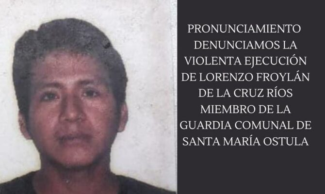 PRONUNCIAMIENTO DENUNCIAMOS LA VIOLENTA EJECUCIÓN DE LORENZO FROYLÁN DE LA CRUZ RÍOS MIEMBRO DE LA GUARDIA COMUNAL DE SANTA MARÍA OSTULA
