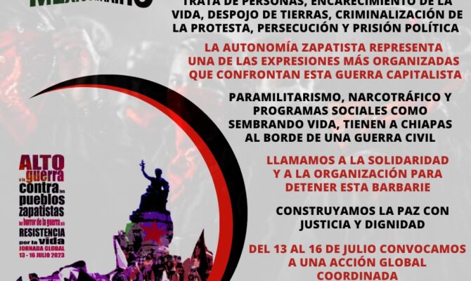 La guerra en Chiapas es un síntoma de lo que ocurre en México: militarización, narcotráfico, desaparecidos, feminicidios, trata de personas, encarecimiento de la vida, despojo de tierras, criminalización de la protesta, persecución…