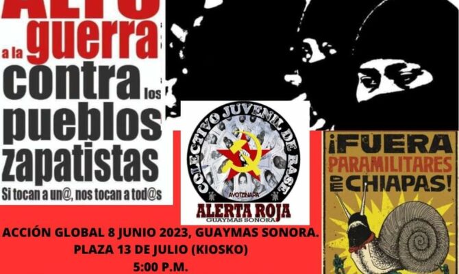 Jueves 8 de junio 5 pm exterior del Teatro Juárez Los pueblos zapatistas ¡NO ESTÁN SOLXS! Tomemos las calles, las plazas, las universidades, cualquier espacio dónde nos encontremos. Y dejemos claro a…