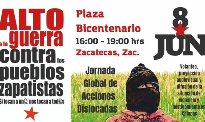 Acción global en solidaridad con los pueblos zapatistas Volanteo y convocatoria a evento informativo Jueves 8 de junio 6:00 pm Plaza grande Jo’ Yucatán