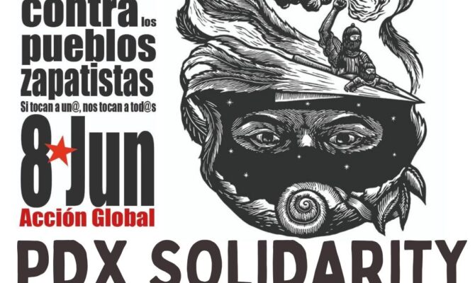Alto a la guerra contra las comunidades zapatistas Si tocan a un@, tocan a tod@s Portland, Oregon EEUU 8 de junio 4:30-5:30pm Consulado de México