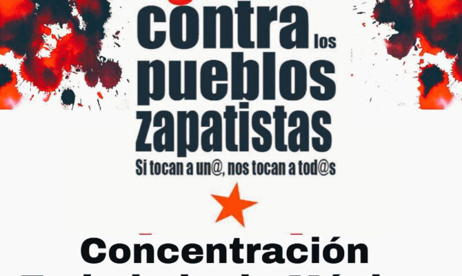 ALTO A LA GUERRA CONTRA LOS PUEBLOS ZAPATISTAS SI TOCAN A UN@, NOS TOCAN A TOD@S Concentración embajada de México en Madrid 9 de junio 20 hrs. Carrera de S. Jerónimo,…