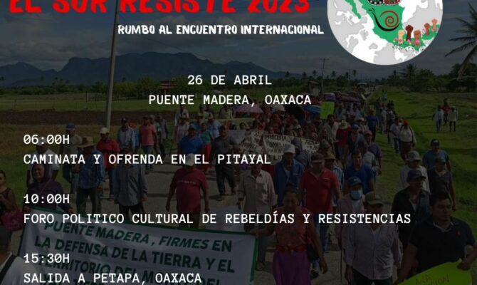 26 DE ABRIL PUENTE MADERA, OAXACA 06:00 H- CAMINATA Y OFRENDA EN EL PITAYAL 10:00H- FORO POLÍTICO CULTURAL DE REBELDIAS Y RESISTENCIAS 15:30H- SALIDA A PETAPA, OAXACA