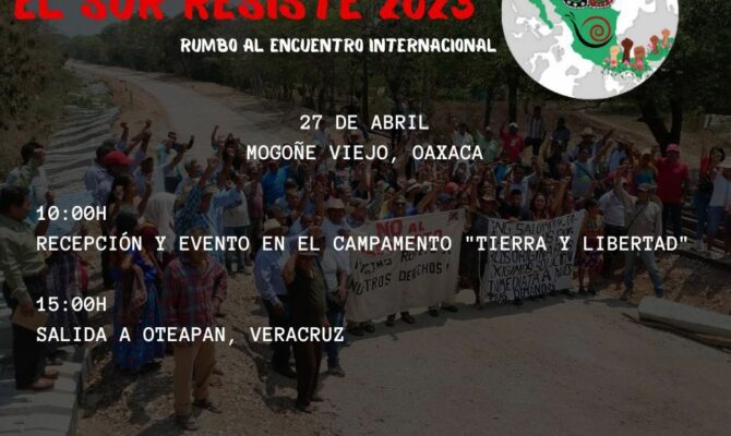 27 DE ABRIL MOGOÑE VIEJO, OAXACA 10:00H- RECEPCIÓN Y EVENTO EN EL CAMPAMENTO «TIERRA Y LIBERTAD» 15:00H- SALIDA A OTEAPAN, VERACRUZ