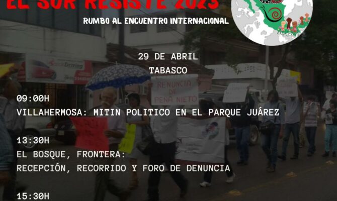 29 DE ABRIL TABASCO 09:00H- VILLAHERMOSA: MITIN POLÍTICO EN EL PARQUE JUÁREZ 13:30H- EL BOSQUE, FRONTERA: RECEPCIÓN, RECORRIDO Y FORO DE DENUNCIA 15:30H- SALIDA A CANDELARIA, CAMPECHE