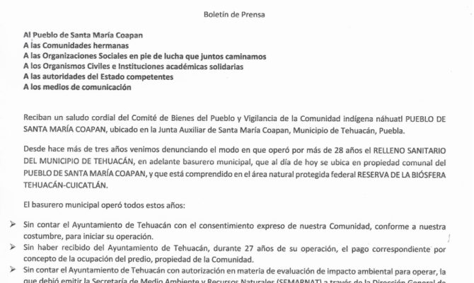 Por falta de medidas de control y de remediación, el incendio nuevamente alcanza proporciones mayores Boletín de Prensa Al Pueblo de Santa María Coapan A las Comunidades hermanas A las…