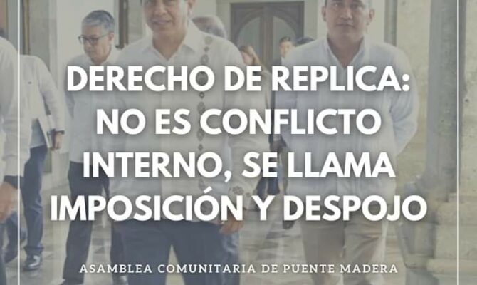DERECHO DE REPLICA: NO ES CONFLICTO INTERNO, SE LLAMA IMPOSICIÓN Y DESPOJO