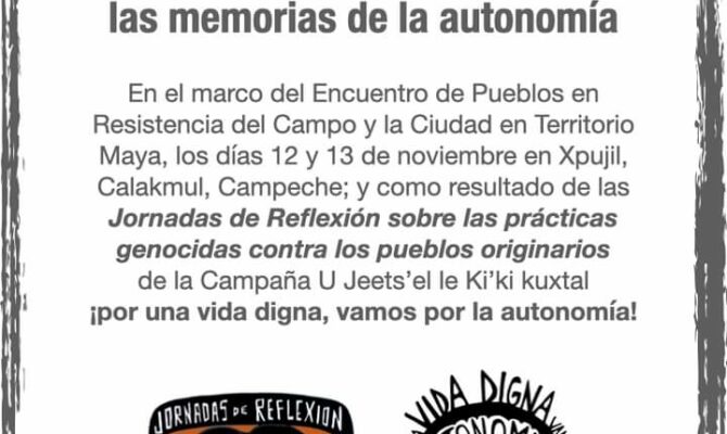 En este día 4 Ix, día de energía femenina, con el permiso de nuestros ancestros y ancestras, desde las tierras sagradas de Calakmul, nos hemos convocado y nos encontramos, primero para pedir…