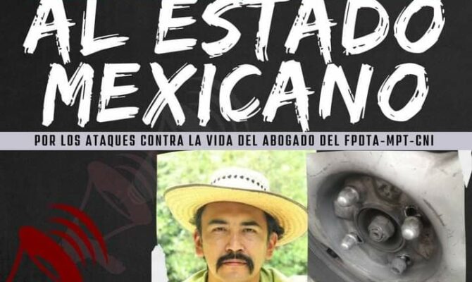 Responsabilizamos al Estado Mexicano sobre el incremento de los ataques en contra de la vida del abogado del FPDTA-MPT-CNI, Juan Carlos Flores Solís
