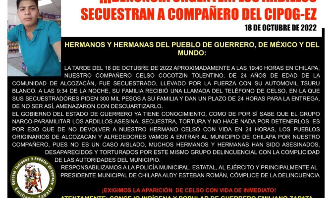 18 DE OCTUBRE DE 2022. HERMANOS Y HERMANAS DEL PUEBLO DE GUERRERO, DE MÉXICO Y DEL MUNDO: LA TARDE DEL 18 DE OCTUBRE DE 2022 APROXIMADAMENTE A LAS 19:40 HORAS EN…