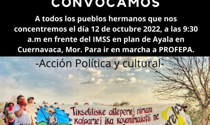 12 de octubre día de las resistencias de los pueblos indígenas. UNIFICACIÓN DE LOS PUEBLOS Y COLONIAS CONTRA LA MINERÍA EN MORELOS. CONVOCAMOS A todos los pueblos hermanos que…