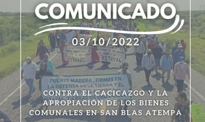 COMUNICADO: CONTRA EL CACICAZGO Y LA APROPIACIÓN DE LOS BIENES COMUNALES DE SAN BLAS ATEMPA
