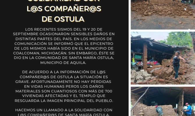 AL PUEBLO DE MÉXICO Y A LOS PUEBLOS DEL MUNDO. La COMUNIDAD INDÍGENA DE SANTA MARÍA OSTULA hace del conocimiento general que los fuertes SISMOS DE LOS PASADOS DÍAS, CON EPICENTRO EN…