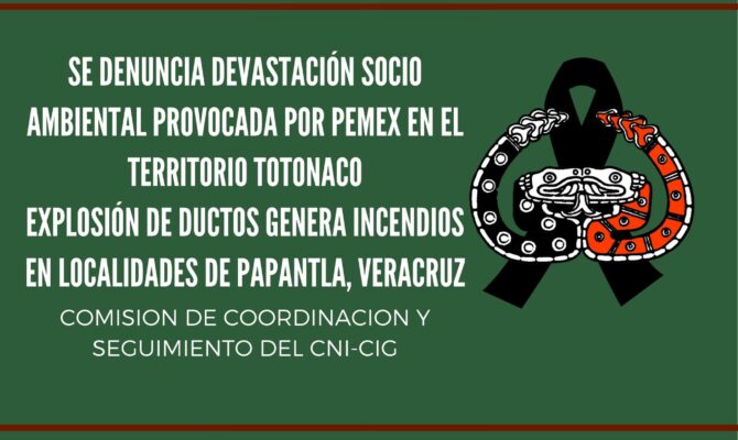 Se denuncia devastación socio ambiental provocada por PEMEX en el territorio Totonaco. Explosión de ductos genera incendios en localidades de Papantla, Veracruz.