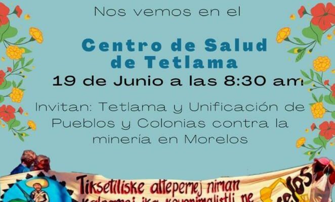 Nos vemos en el Centro de Salud de Tetlama 19 de junio a las 8:30 am Invitan: Tetlama y Unificación de Pueblos y Colonias contra la Minería en Morelos