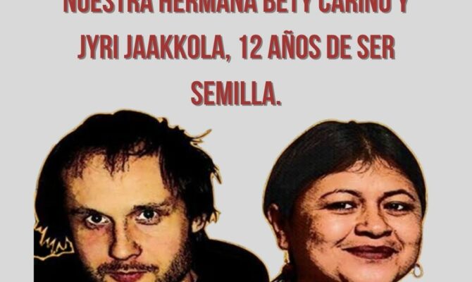 A 12 años del asesinato de nuestra hermana Bety Cariño y Jyri Jaakkola, 12 años de ser semilla.