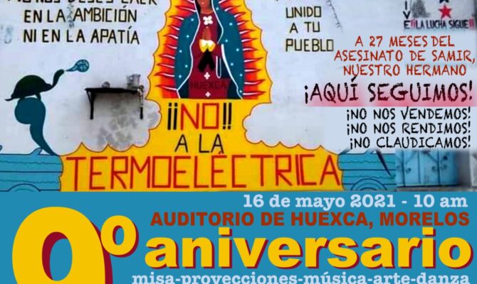 16 de mayo de 2021 Auditorio de Huexca, Morelos. 9° aniversario Misa-proyecciones-musica-arte-danza ¡¡NO A LA TERMOELÉCTRICA!! Invita: Huexca en resistencia.