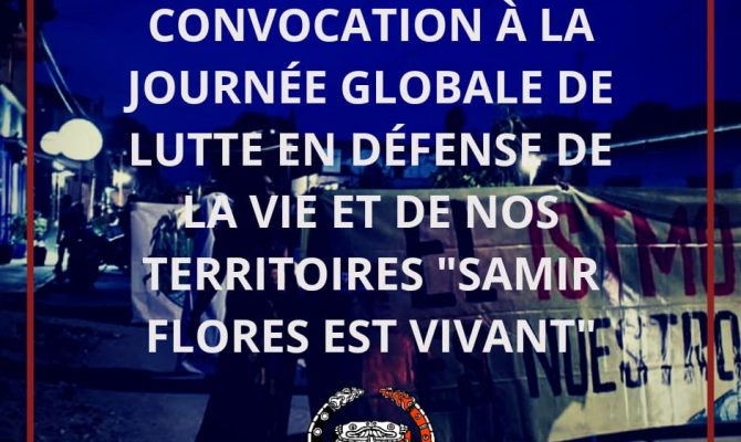 Convocation à la Journée globale de lutte en défense de la vie et de nos territoires «SAMIR FLORES EST VIVANT»