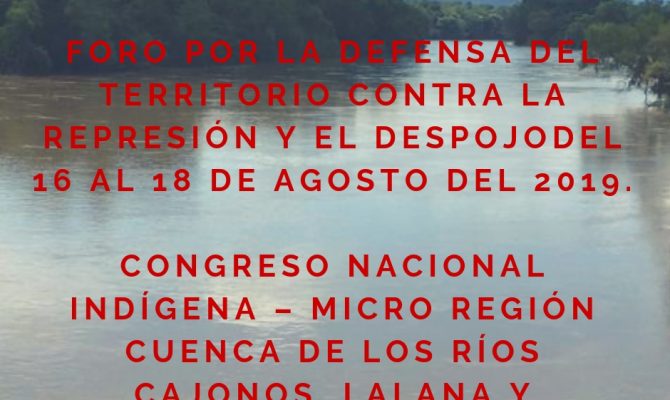 Foro por la Defensa del Territorio contra la Represión y el Despojo del 16 al 18 de agosto del 2019.