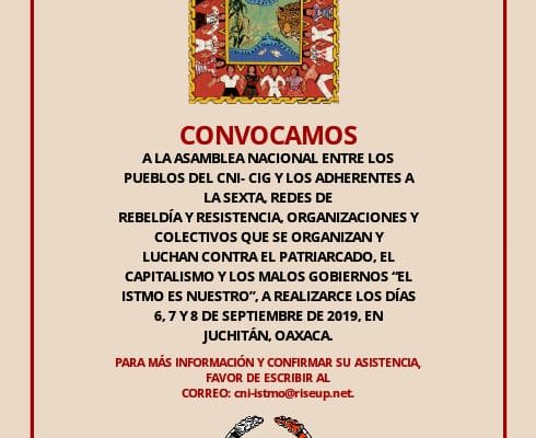 Convocatoria a Asamblea «El Istmo es Nuestro» 6, 7 y 8 de septiembre en Juchitán, Oaxaca