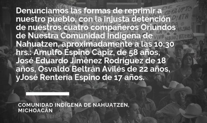 Pronunciamiento de la comunidad Indígena de Nahuatzen por represión del 26 de marzo