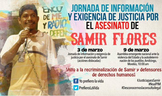 JORNADA DE INFORMACIÓN Y EXIGENCIA DE JUSTICIA POR EL ASESINATO DE SAMIR FLORES 3 de Marzo- Jornada de información y exigencia de justicia por el asesinato de Samir Flores (acciones dislocadas) 9…
