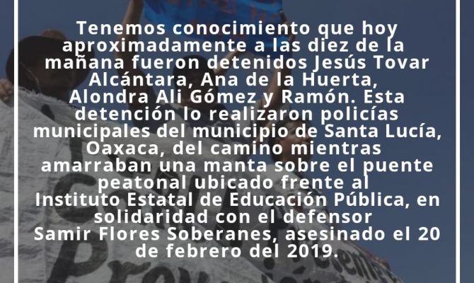 Denuncia de Tequio Jurídico A.C. ante la detención ilegal de Jesús Tovar, Ana de la Huerta, Alondra Ali y Ramón por solidarizarse con Samir Flores